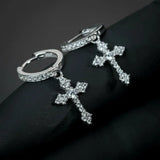 Fashion Simple Cross Drop Hoop Earrings Shiny Crystal Zircon Earring for Women Men Personality Accessories Jewelry Birthday Gift