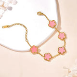 Lucky Clover Women's Hand Bracelets Double Sided Flowers Jewellery Gifts Stainless Steel Bracelet Gold Plated Bracelets Man