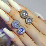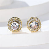 Luxury Female White Stone Stud Earrings Gold Silver Color Zircon Stone Charm Crystal Wedding Jewelry For Women